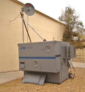 At the spectator tent, a portable shelter containing local 480V switchgear and two 75KVA step-down transformers was placed. One of these transformers was a shielded type which fed 200A Y120/208Y to the audio/video systems in the spectator tent. The other transformer fed 200A Y120/208 to the event lighting system in the tent consisting of PAR cans and moving lights. Lighting and Video systems provided by DAV Productions. A third 45KVA transformer sourced from the shelter fed a sub panel which was dedicated to catering, registration and press tents, and user laptop power. (the requirement was for enough power for 100 laptops utilizing the hotspot in the tent) Due to the widely disbursed services and sub panels, power system grounding was a critical consideration. The 480V delta configuration of the high-voltage system was chosen so that there were no ground runs of great length. At each step-down transformer, each derived system was grounded locally with a driven ground rod, or in the case of the main power trailer distribution, ground field. Care was taken to insure that audio/video and data circuits that had destinations in disbursed derived systems were linked with either fiber optic, or Ethernet that terminated in wireless access points to avoid ground loops. Since the power origination at the barracks was over 1000' cable length away from the farthest point of use, circulating ground currents could have been a problem. Communications System The voice communications system was a repeat of the successful configurations used in previous DARPA Challenges, however the physical scope was greatly reduced. Infrastructure As mentioned earlier, it is difficult to believe that there could be coverage issues in such a small coverage area, but the topology dropped off suddenly in a critical area of the course. Full quieting performance could be realized at locations at street level 20 miles away with a walkie, but this area scarcely a mile away was badly impeded.