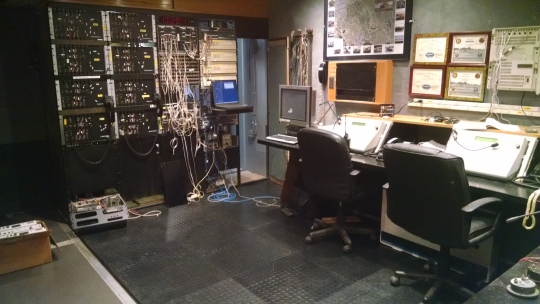 The three primary consoles are 18-channel Telex/Vega
